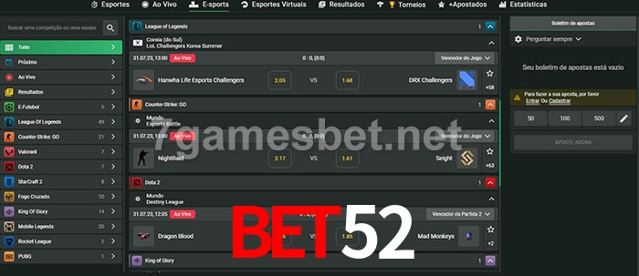 O bet52 oferece uma grande seleção de opções de apostas em e-sports com probabilidades competitivas